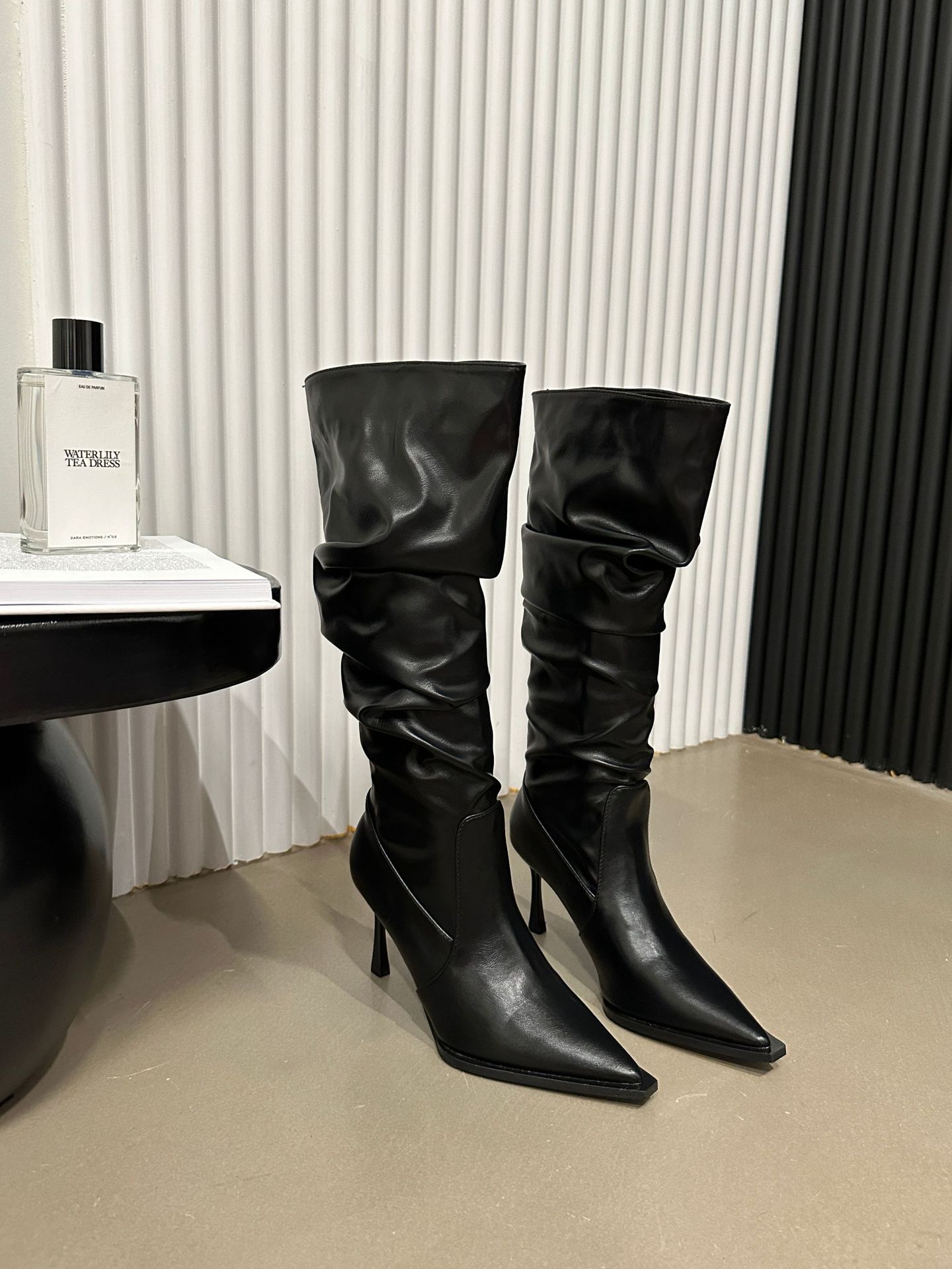 These stunning knight boots are crafted with a sleek pointed toe design and a slim 3" high heel, offering both elegance and elevated height.