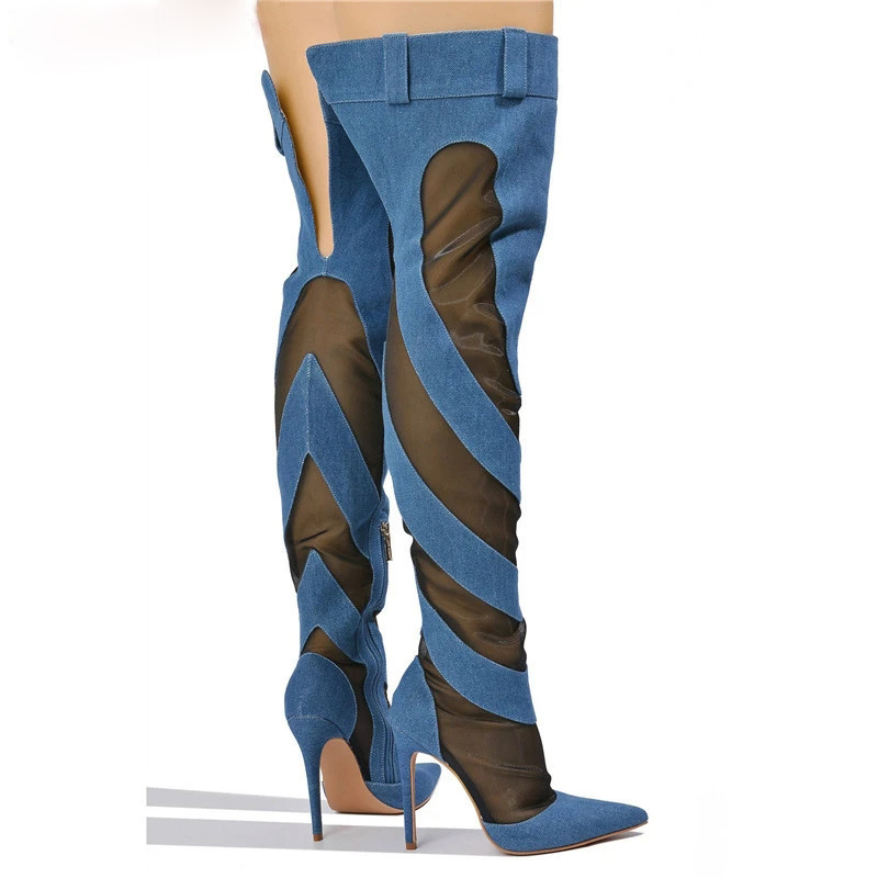 Patchwork Thigh High Knee Boots - Brazen Blue & Jet Black | Ultra High Heels
