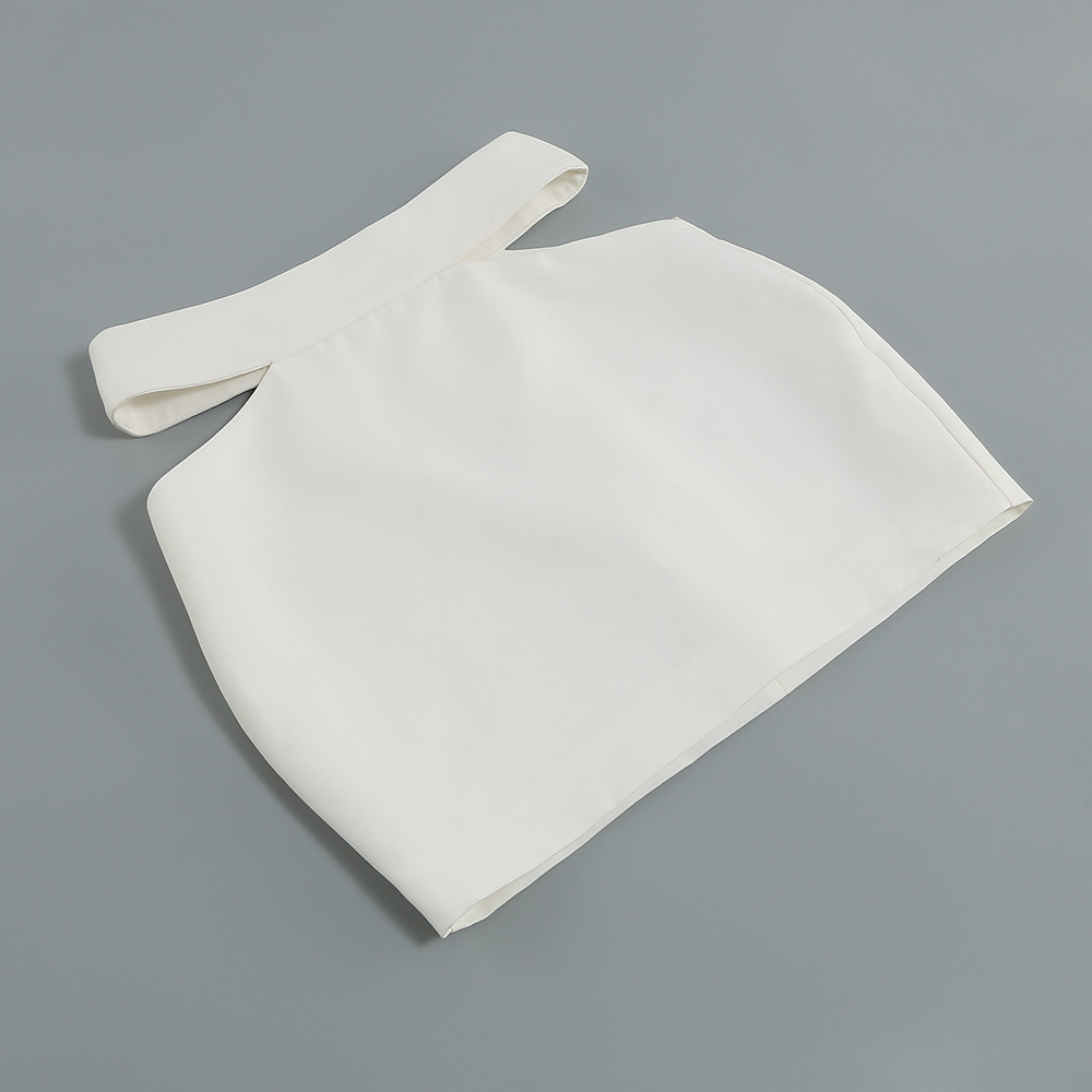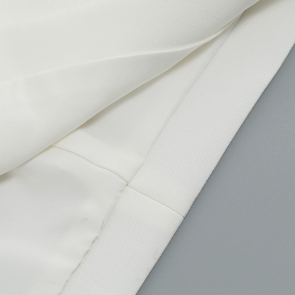 The solid white color, accentuated by unique stitching details, creates a timeless and clean look, while the slim fit ensures a flattering shape that hugs your curves.